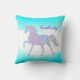 Beschikt over een leuke grillige eenhoorn, gedaan in zacht aqua en paarse faux glitter en gepersonaliseerd met jouw naam. Een mooi accent voor je bed of bank, perfect voor meisjes van alle leeftijden!