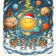 This unique and whimsical holiday design features the entire solar system coming to life to exchange gifts. Watch as happy planets party alongside dancing people, cheerful animals, and festive trees in a joyful, surreal gathering. Perfect for astronomy lovers, science fiction fans, or anyone who wants to send a greeting that is truly out of this world. High-resolution print ensuring vibrant colors and crisp details.