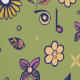 grillige uilbloemenmelodieuil patroonkinder kamerkinderkamer decormet een natuuruil en bloemen ontwerpmuzieknotitiesdierlijke afdrukgroen