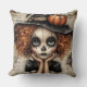 Whimsy in Mourning: The Pumpkin-Eyed Reverie Sierkussen Een porseleinen figuur, gevangen tussen onschuld en griezeligheid, staart dromerig uit een droomlandschap. Haar schedelachtige gezicht en brede, spookachtige ogen roepen een tedere melancholie op, omlijst door vurige krullen en een klein pet met pompoen dat fluistert van herfstonheil. Met haar kin in handschoen zweeft ze tegen een achtergrond van verouderde krantenknipsels - fragmenten van vergeten verhalen en spectrale fluisteringen. Het palet is warm en nostalgisch, een zachte botsing van gotische charme en speels verdriet, waardoor kijkers worden uitgenodigd in een wereld waar geheugen en maskerade verstrengelen.