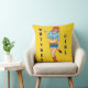 Drijg kussens met een pop-kunstpin omhoog illustratie van een rodeomeisje in cowboy pet en glas whisky in hand tegen een gele achtergrond met witte stippen.