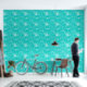 White and turquoise floral tile pattern wallpaper behang