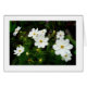 Een foto van witte kosmos bloemen, als een kleine kosmos van sterren tussen de bladeren. De kaart is leeg binnenin gelaten, maar kan verder worden aangepast.