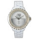 White Cute Owl Animal Silver Monogram Horloge