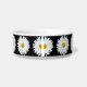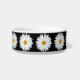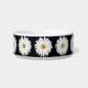 Keramische kom voor voeder voor gezelschapsdieren voor katten of honden die is voorzien van het foto-afbeelding van een witte Daisy-bloem met een geel midden tegen een zwarte achtergrond en die is gedrukt in een repetitief patroon. Een mooi, bloemetjesontwerp! Selecteer de grootte van de kom van uw huisdier.
