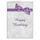 vrouw verjaardagskaart, geschikt voor elke leeftijd. Mooie witte vochtige ondergrond met draaiende golven en bloeiingen en een , stijlvolle, schattige, paarse boeg- en lintachtige afbeelding. De binnenkant van deze kaart heeft de groet "Je een zeer gelukkige verjaardag wensen" Dit is een modern, modieus, stijlvol, stijlvol en stijlvol verjaardagscadeau, geschikt voor elke vrouw of elk meisje van elke leeftijd. Alle tekst is volledig aanpasbaar om aan uw vereisten te voldoen. Als u hulp nodig hebt om uw product aan te passen, neem dan contact met mij op via mijn winkel en ik zal u graag helpen. Bogen en linten afbeeldingen aangekocht van digital-design-by-elena. Damaspatroon door prachtige Doodles.