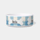 Wit hondenbot met de naam van de hond op aqua blauw en witte gingham achtergrond. De naam is bewerkbaar.