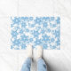 Laat het sneeuwen! Achtergrond sneeuwvlokken op Doormat. Een eenvoudig, klastig en elegant wit en blauw sneeuwvlokje naadloos patroon.