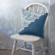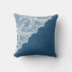 White Eyelet Faux Lace Corner on Blue Kussen