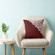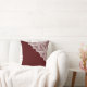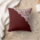 Deze kussen hebben een afbeelding witte oogdruppel die één hoek bedekt. Het patroon van de kant bestaat uit kleine bloemen en bladeren. Het wordt geplaatst op een maroon rode achtergrond. De achterkant van de kussen heeft hetzelfde afbeelding. *Let op: het afbeelding van de kant is afgedrukt op de kussen.