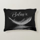 Een enkele witte veer die drijft met een rimpelend watereffect op zwarte achtergrond met "geloof" tekst. De tekst kan worden uitgegeven of worden geschrapt.