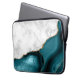 White Marble Gilded Teal Blue Agate Laptop Sleeve