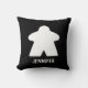 Deze zwarte kussen kenmerkt een groot wit meeple met douanetekst in witte gekapitaliseerde doopvont onderaan. De andere zijde kenmerkt een patroon van kleine witte monsters om aan te vullen.