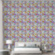Een zijportret profiel van een witte berggeit. Wilde bloemen zijn rondom de berggeit allemaal getekend in een tattoo stijl in een achtergrond van blauw
