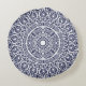 White & Navy Blue Modern Mandala boho chic Indian Rond Kussen
