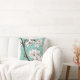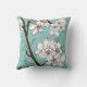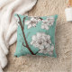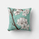Aquamarine achtergrond met grote, witte, oosterse bloemen en donkerbruine afgebeelde omtrek, met inbegrip van bruine stengels en tak. Een abstract patroon.