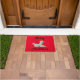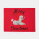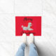 Het liefste oude beeld van witte poedel op rood scharreltapijt.