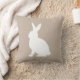 White Sitting Bunny Silhouette On Beige Easter Kussen