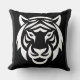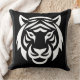 Add a touch of wild elegance to your home with this black pillow featuring a striking white tiger face.