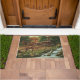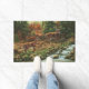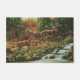 Whitetail doet en boft die door het bos loopt langs een draperende stroom van stenen en watervallen. Realistisch kunstwerk gemaakt van een origineel oliesschilderij van de kunstenaar Crista S. Forest.