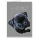 Een foto van onze zwarte pug, Maya, toen ze een puppy was. Het afbeelding werd veranderd met filters Photoshop voor een creatieve blik. Maya kijkt met grote ogen op, alsof je zegt: "Wie ben ik?"