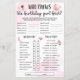 Betrek je feestgasten met het ultieme verjaardagsquizspel! Vier in stijl en laat iedereen lachen met ons "Who Knows the Birthday Girl Best?"-spel, nu in een prachtig roze ruimtethema. Perfect voor een tween of tiener verjaardagsfeestje, deze 3 in 1 spel zal wat extra plezier brengen aan de festiviteiten. Geniet van het ontdekken van plezier en lachen door middel van gepersonaliseerde vragen over haar favoriete films, boeken en deze leuke of-die keuzes.