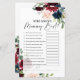 Wie kent mama het beste? Baby shower Spelkaarten in Boho Bourgogne Bloemen Thema