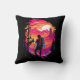 Een koele retro stijl kleurrijke berglandschap ontwerp met een wandelaar in de zonsondergang.