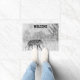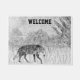 Een deurmat voor natuurliefhebbers met een zwarte en witte wolf schets. Bevat de tekst 'Welkom', die kan worden aangepast. ©Annabel Potter