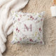 Witte aangepaste monogram en gevlekte wilde bloem werpen kussen.