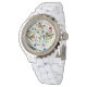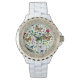 Wilde bloemen en vlinders op wit horloge