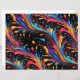Een levendig en gewaagd kleurpatroon met verfspatten op een rijke donkere achtergrond. Een verbluffende en wilde grafische afbeelding voor elke gelegenheid.