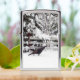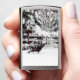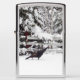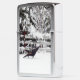 Foto van een wilde kalkoen die in sneeuw loopt. Zware sneeuw bedekte bomen en hek.