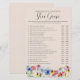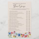 Shoe Game for Wedding or Couples Shower, gepersonaliseerd met de naam van de bruid en de bruid. De quizgame bevat 20 vragen die u desgewenst kunt bewerken. Het botanische ontwerp van deze waterverf heeft een rand van wilde bloemen, waaronder een madeliefje papaver, een kornbloem, een boterbloem en een blauwbel. Een elegante moderne florale met een uitstekende kalligrafie. Ideaal voor plattelands-, katalysatoren-, plattelands- of bohemiaans, bloemig, natuurlijk tuinthema, enz. Blader naar mijn winkel, Wildflower Charm collectie, voor uitnodigingen en overeenkomende objecten of stuur me een bericht naar creëer sjablonen voor overeenkomende producten voor jou.