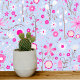 Uniek roze, wit en groen wildbloem botanisch bloemmotief op een bleke poederblauwe achtergrond. Originele kunst van Nic Squirrell.