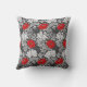 Drijf kussen in een William Morris, Art Nouveau, bloemletterdruk van gestileerde chrysanthema's, digitaal versterkt en gekleurd, in tinten van zilvergrijs/grijs en wit, voorzien van diep rood, op een donkergrafietgrijze achtergrond