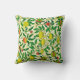 Gooi kussen in een William Morris Art Nieuw patroon van citroenen, pomegranaten en perziken, met bloesems, op bladtakken - vruchten in geel en koraal sinaasappel, met groene bladeren, tegen een gepatenteerde, gele en witte achtergrond