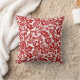 Throw pillow in a vintage William Morris floral damask pattern, digitally enhanced and colored, in deep Chinese red on a white background