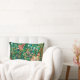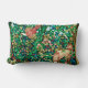 Lumbar pillow in een William Morris tapestry design of a fox and a fheasant in flight in fantasy forest setting of leafy green foliage and fruitbomen