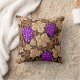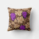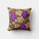 Gooi kussen in een William Morris wandtapijtpatroon van diep violet paarse druiven tegen een achtergrond van licht tot donkerchocoladebruine wijnstokken en bladeren, digitaal versterkt en gekleurd