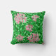 Gooi een kussen in een William Morris Art Nouveau patroon van kamperfoelie bloemen tegen een achtergrond van wijnstokken en bladeren - bloemen in tinten van ijsroze, met smaragdgroene bladeren, tegen een pastelgroene achtergrond