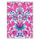 Carte à noter dans un vintage William Morris motif de jacinthes, tulipes et feuilles, dans les tons fuchsia et rose douce, accentué de bleu foncé et turquoise, sur un arrière - plan blanc