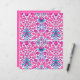 Papier in een William Morris patroon van hyacinten, tulpen en bladeren, in fuchsia en zacht roze, geaccentueerd met donkerblauw en turquoise, op een witte achtergrond