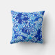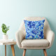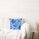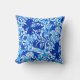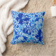 Gooi kussen in een William Morris bloemenprint van gestileerde lelies en irissen, digitaal versterkt en gekleurd, in tinten van diep kobaltblauw, ceruleenblauw en licht hemelsblauw op een witte achtergrond