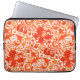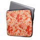 Computersleeve in een William Morris-florafdruk van gestileerde liliegen en Irises, digitaal versterkt en gekleurd, in lichttinten tot diep Mandarijns sinaasappel op een witte achtergrond, digitaal gekleurd en versterkt