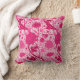 Gooi een kussen in een William Morris, Art Nouveau, textielpatroon - elegant, gestileerd, chrysanten, zonnebloemen en bladeren, in tinten van licht tot diep fuchsia roze en bordeaux, op een witte achtergrond