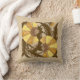 Drog kussen in een William Morris Jacobean floral tegel, digitaal versterkt en gekleurd, in tinten van bruin, beige en donkerchocoladebruin, voorzien van diep mosterdgoud en mosterdgeel