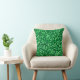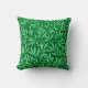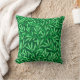 Drog kussen in een William Morris Art Nieuwe textielpatroon van gestileerde wilde takken en bladeren in tinten groen, voorzien van wit, licht kalkgroen, op een donkergroene achtergrond van smaragd/pijngroen