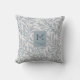 De elegantie gooit kussen met wilgachtige takken naadloos patroon in prachtige blauwgroen kleur en een aangepast monogram in sans serif doopvont met een tak onderaan