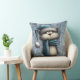 Winter Blue Christmas Cat With Hat And Scarf Kussen